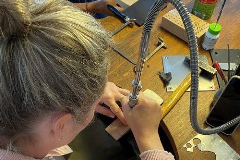 Dieser Goldschmiedekurs vermittelt die kreative und handwerkliche Ausführung von Schmuckstücken in Silber, Messing oder Kupfer. Sie erlernen Grund- und weiterführende Techniken und werden feilen, biegen, sägen, löten, schmieden und versäubern. Je nach Geschicklichkeit und mit Hilfestellung der Kursleiterin können Sie Ihre Schmuckstücke nach eigenen Ideen anfertigen.